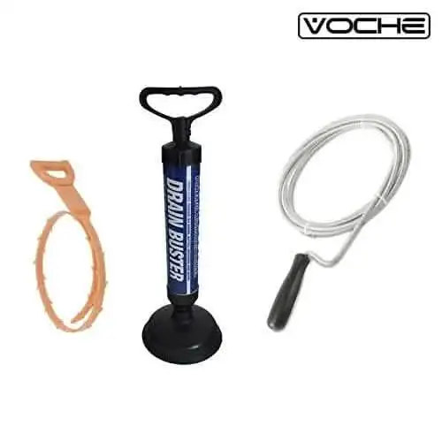 Voche® 3Pc Drain Buster Suction Plunger Drain Unblocker + 2 Flexible Brushes Set