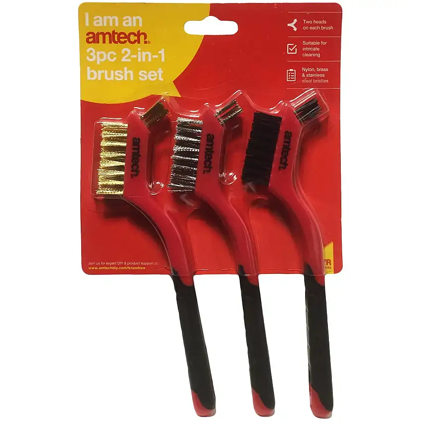 Amtech 3 Piece 2 in 1 Mini Wire Brush Set
