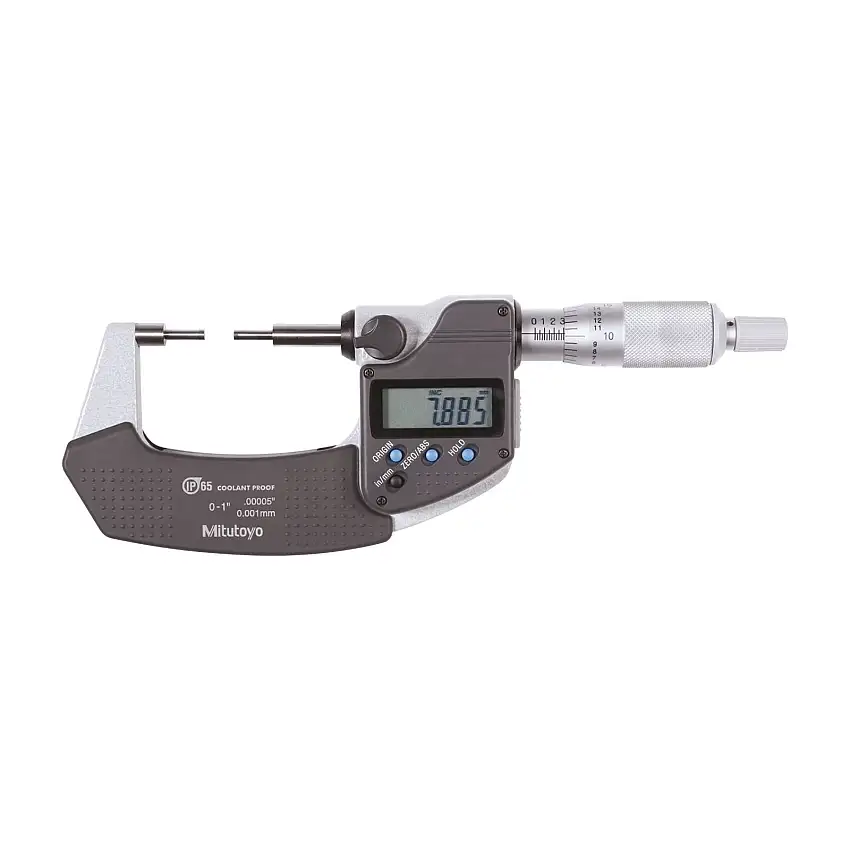0-1″ Digimatic IP65 Spherical Anvil and Spindle Tube Digital Micrometer – 395 Series (Mitutoyo)
