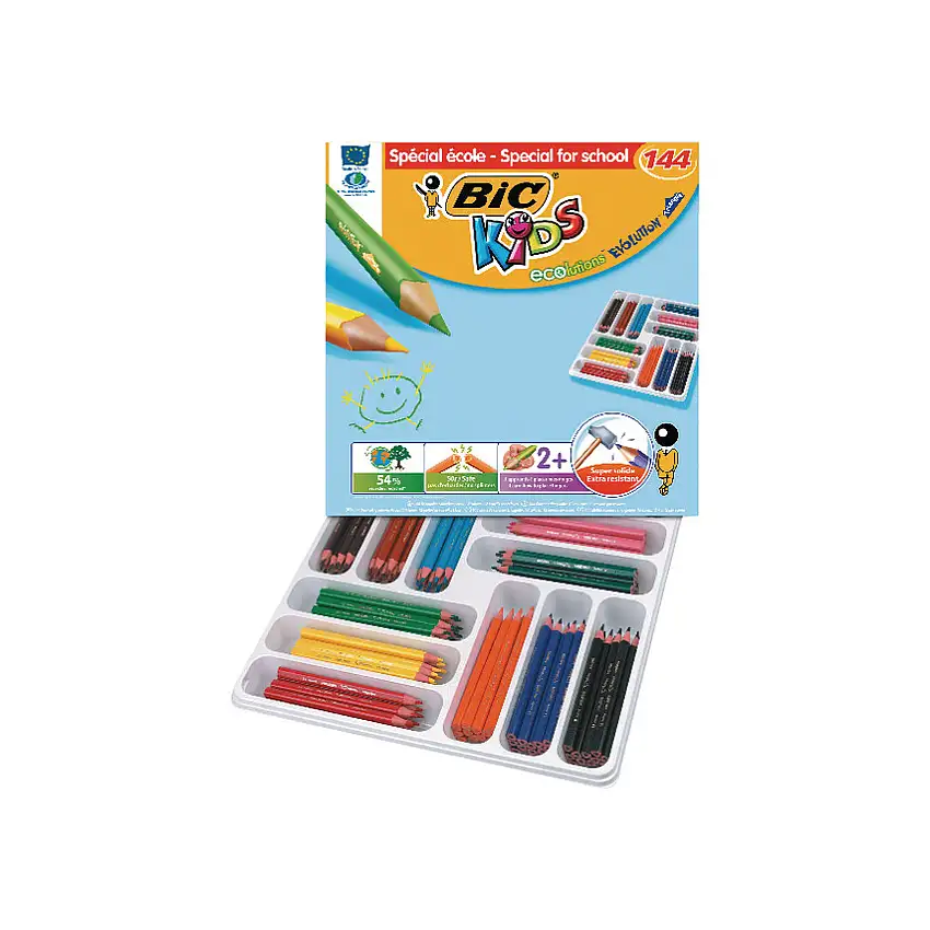 BiC 887831 Kids Ecolutions Triangle Colouring Pencils Class Pack 144 (PK-144)